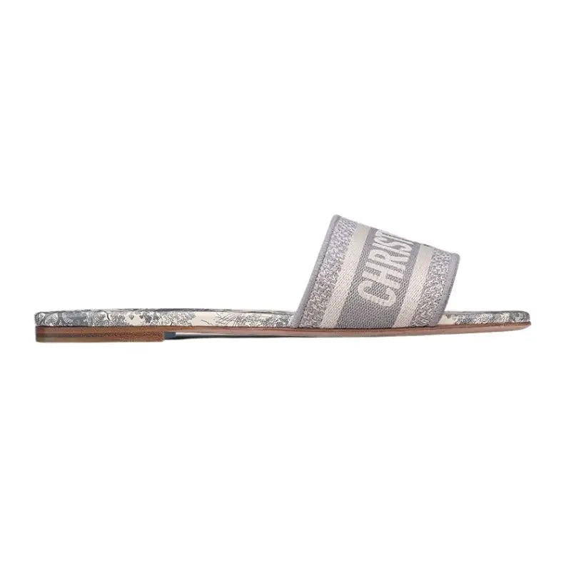 Dior Wmns DWay Slide 'Gray Embroidered Cotton'
